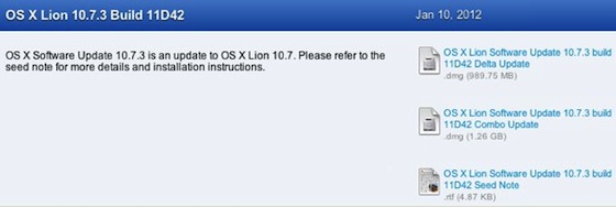 La Build 11D42 di OS X 10.7.3 è quella che in gergo viene definita Golden Master, cioè la versione finale del software, priva di bug pronta per essere testata, prima della distribuzione definitiva ai possessori di OS X Lion. Non si sa ancora ufficialmente la data del rilascio per l’utenza Mac, ma se ne saprà di più nel breve periodo.