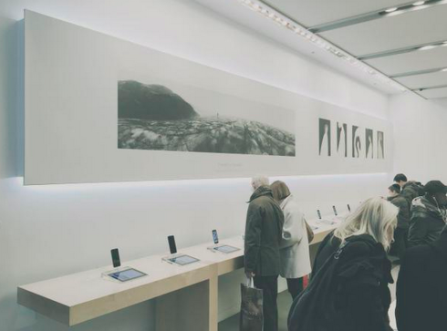Per il momento gli store interessati da questo cambiamento sono quelli di Londra, New York e Toronto. Le immagini sono esposte agli utenti che si trovano il dispositivo in basso e l’opera d’arte in alto. Gli artisti interessati sono Roz Hall, Matt Pyke, Craig & Karl.