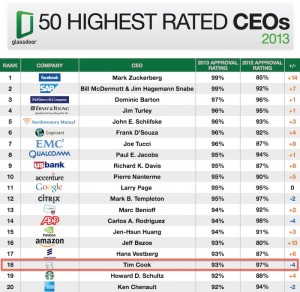 Il sito americano Glassdoor, ha pubblicato la classifica dei manager delle grosse multinazionali americane. Il sito è specializzato in carriere professionali e pubblica annualmente la classifica dei top manager analizzando 500 mila compagnie e i pareri mandati dagli impiegati su come i manager stanno gestendo la società.