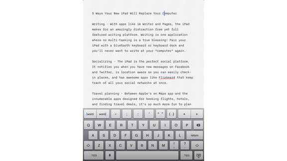 Per scrivere iPad offre applicazioni come iA Writer e Pages, applicazioni che funzionano perfettamente su iPad. Se avete dei dubbi sulla tastiera touch screen dell’iPad allora si possono utilizzare tastiera bluetooth o tastiera dock così a questo punto la differenza con il computer è quasi nulla.