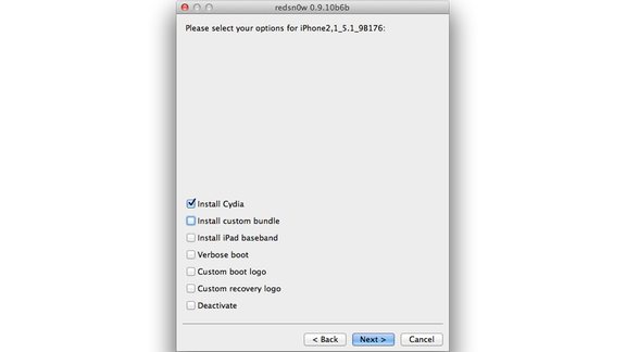 A questo punto bisogna aprire l’applicazione redsn0w e quindi cliccare sul pulsante Jailbreak. Bisogna spegnere il dispositivo collegato al computer. Quindi basta seguire le istruzione e la procedura guidata di Apple che vi indicherà nei dettagli le operazioni da seguire. Controllate nell’ultimo passaggio di aver selezionato il passaggio: Install Cydia, le altre selezioni sono a vostra discrezione. A questo punto lo schermo dell’iPhone farà comparire scritte di comando e dopo il reboot ci sarà l’icona Cydia sull’Home Screen.