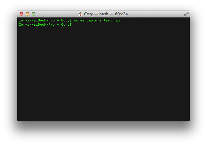 Questa è la frase comando per fare uno screenshot in automatico a tutto schermo della visuale del vostro Mac. Il vostro file verrà salvato con il nome “prova.jpg” se non vi piace basta sostituire la parola “prova”. Il metodo appena descritto ha il difetto che fa lo screenshot immediato, se volete possiamo impostare un timer. Basta scrivere: screencapture -T 10 timer.jpg il file verrà salvato con il nome timer.jpg e dopo la T dovete scrivere quanti secondi aspettare prima dello screenshot.