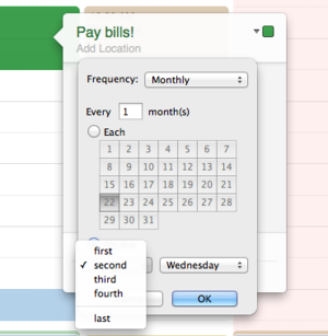Se utilizzate un Mac, avete l’app Calendario, che ha da sempre la possibilità di programmare eventi ricorrenti nel tempo. Ad esempio potete impostare una riunione ogni primo lunedì del mese. Questa funzione è molto comoda e pratica. Infatti nelle Impostazioni dell’evento, trovate l’opzione Ripetizione e poi basta impostare Mensile e la data che interessa, ad esempio: primo, secondo, terzo, quarto mercoledì del mese. Se utilizzate iCloud, sincronizzate il tutto con iOS e avete il calendario di iOS pronto e aggiornato. Si può anche sincronizzare la versione web dell’app Calendario.