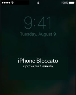 Quando l’iPhone è disabilitato, sullo schermo compare l’errore che riporta la quantità di minuti dopo i quali puoi riprovare ad inserire il codice di sblocco. In base al numero di volte che hai inserito il codice errato, viene settato il tempo di attesa necessario per un nuovo tentativo.
