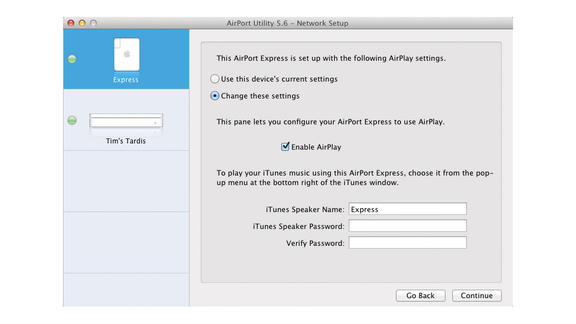 Infine un ultimo consiglio per rendere ancora più entusiasmante l’ambiente: se avete un impianto audio wifi o se volete avere uno streaming audio per diverse stanze utilizzando sempre la connessione internet dell’AirPort Express. Collegate lo Stereo all’Apple Airport Express tramite il cavo audio da 3,5mm. Se andate su Applicazioni –> Utilities selezionate Airport Express e quindi selezionate la casella AirPlay, seguite la procedura guidata che è molto semplice e se volete impostate una password.