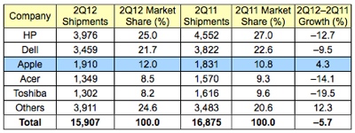 20120712-124652.jpgGartner è l’istituto di analisi e ricerca forse più affidabile e ha pubblicato i dati di vendita negli Stati Uniti di computer Apple. Il risultato prosegue il trend positivo dell’azienda con un + 4,3%. Il risultato è positivo ma non eccezionale, infatti i risultati migliori Apple li consegue con il programma Back to School, quando gli studenti comprano i computer per l’anno scolastico.